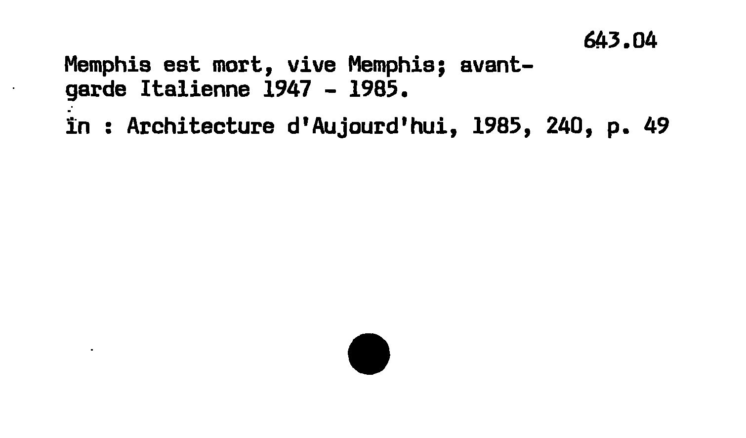- Memphis est mort, vive Memphis : avant- garde Italienne 1947 - 1985