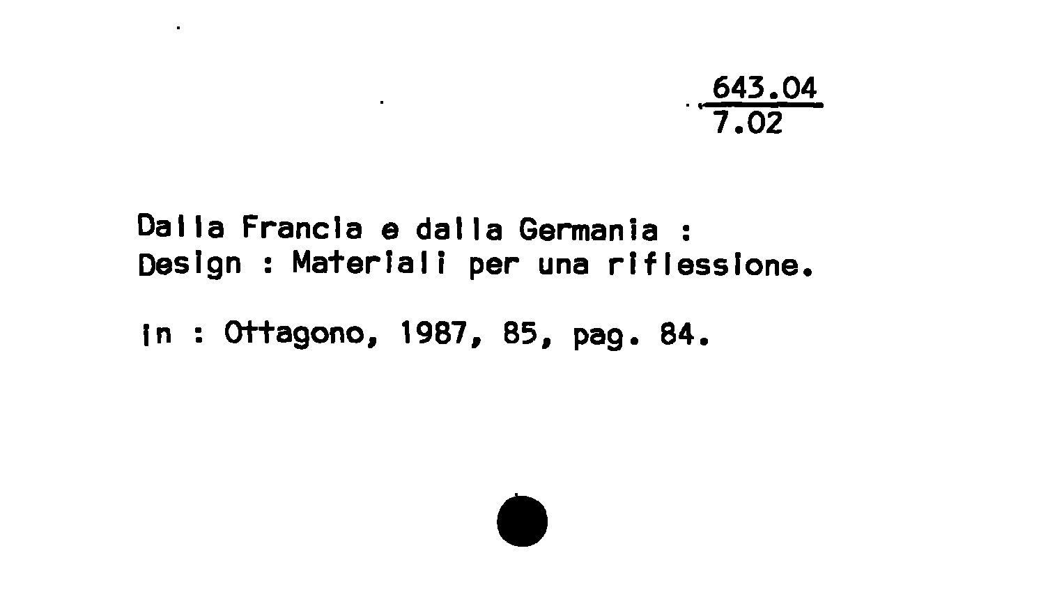- Dalla Francia e dal la Germania : Design ; Materiali per una riflessione