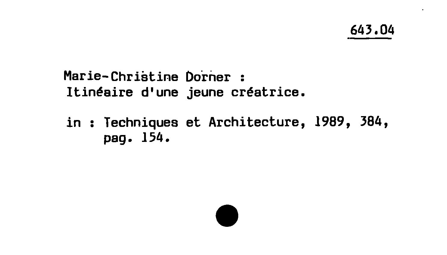 - Marie-Christine Dorher : Itinéaire d'une jeune créatrice