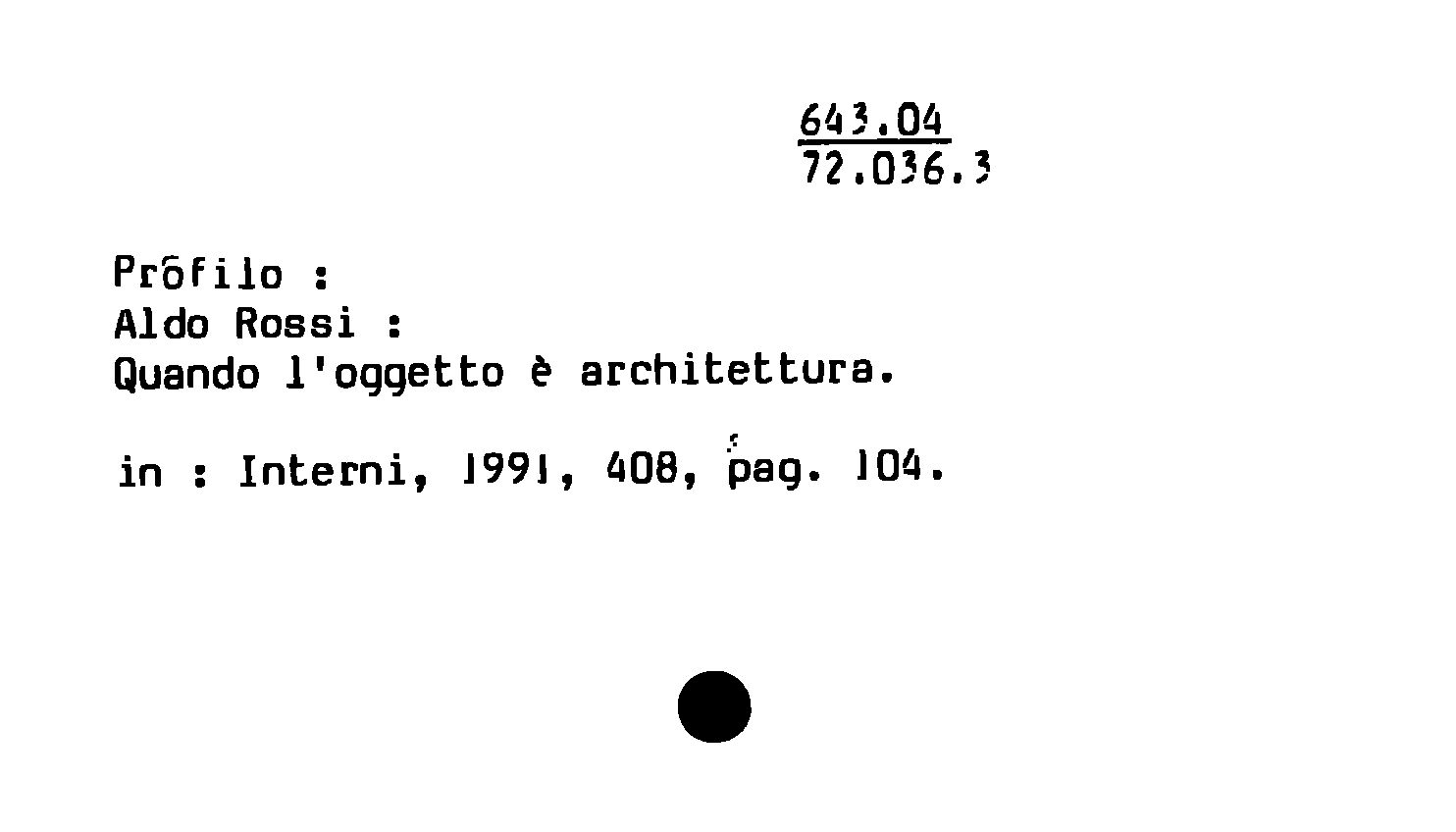 - Profilo : Aldo Rossi ; Quando l'oggetto è architettura