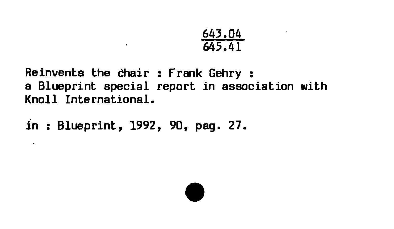 - Reinvents the chair : Frank Gehry ; a Blueprint special report in association with Knoll International