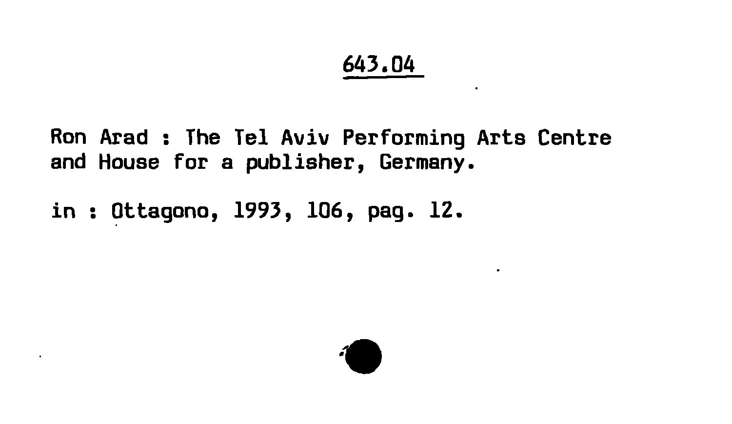 - Ron Arad : The Tel Aviv Performing Arts Centre and House for a publisher, Germany
