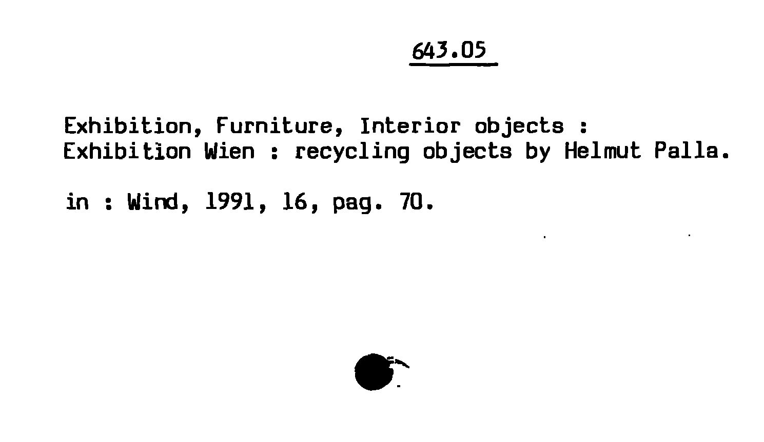 - Exhibition, Furniture, Interior objects : Exhibition Wien ; recycling objects by Helmut Palla