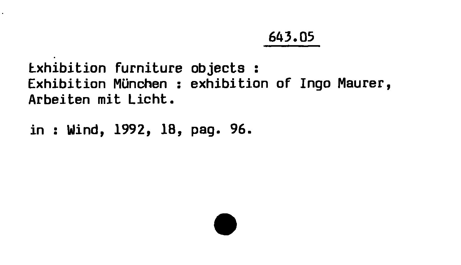 - Exhibition furniture objects : Exhibition München ; exhibition of Ingo Maurer, Arbeiten mit Licht