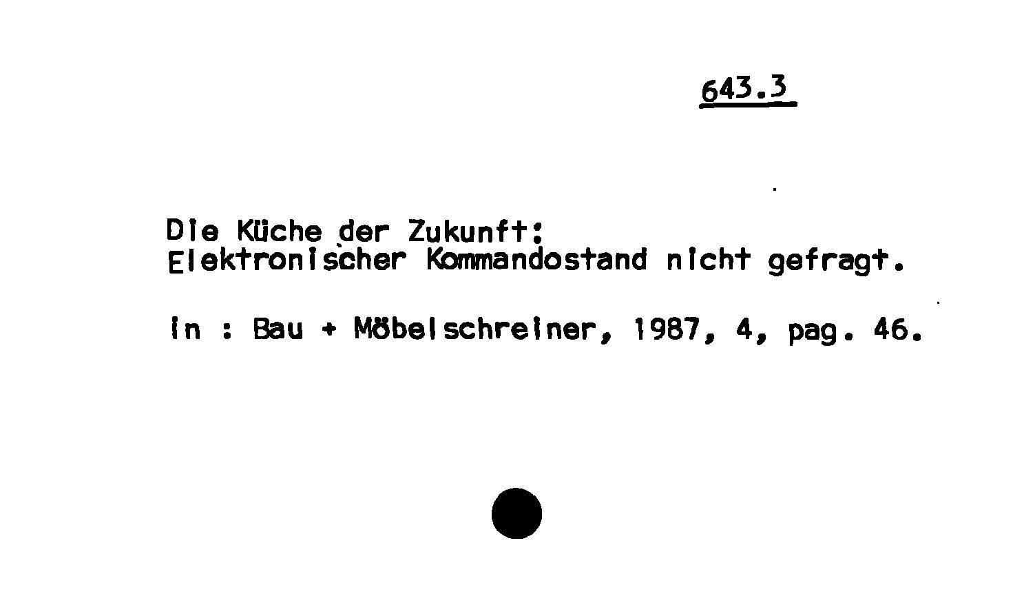 - Die Küche der Zukunft : Elektronischer Kommandostand nicht gefragt