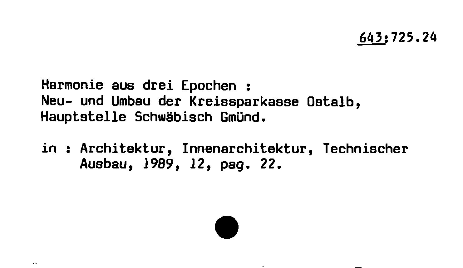 - Harmonie aus drei Epochen : Neu- und Umbau der Kreissparkasse Ostalb, ; Hauptstelle Schwabisch Gmünd