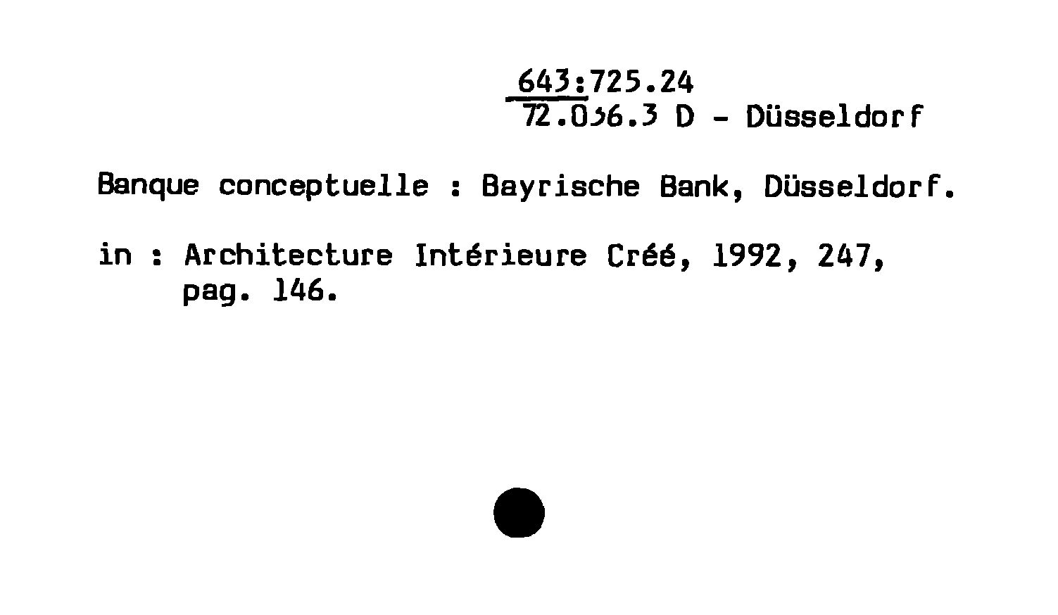 - Banque conceptuelle : Bayrische Bank, Düsseldorf
