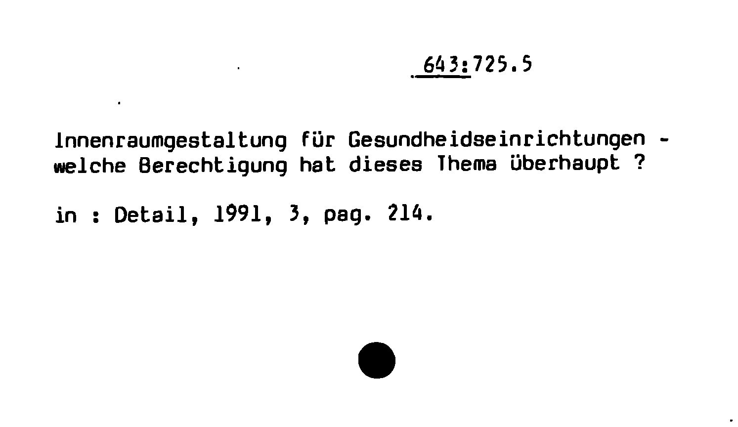 Innenraumgestaltung für Gesundheidseinrichtungen welche Berechtigung hat dieses Thema überhaupt ?