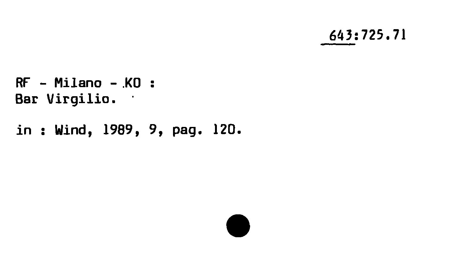 - RF - Milano - KO : Bar Virgilio