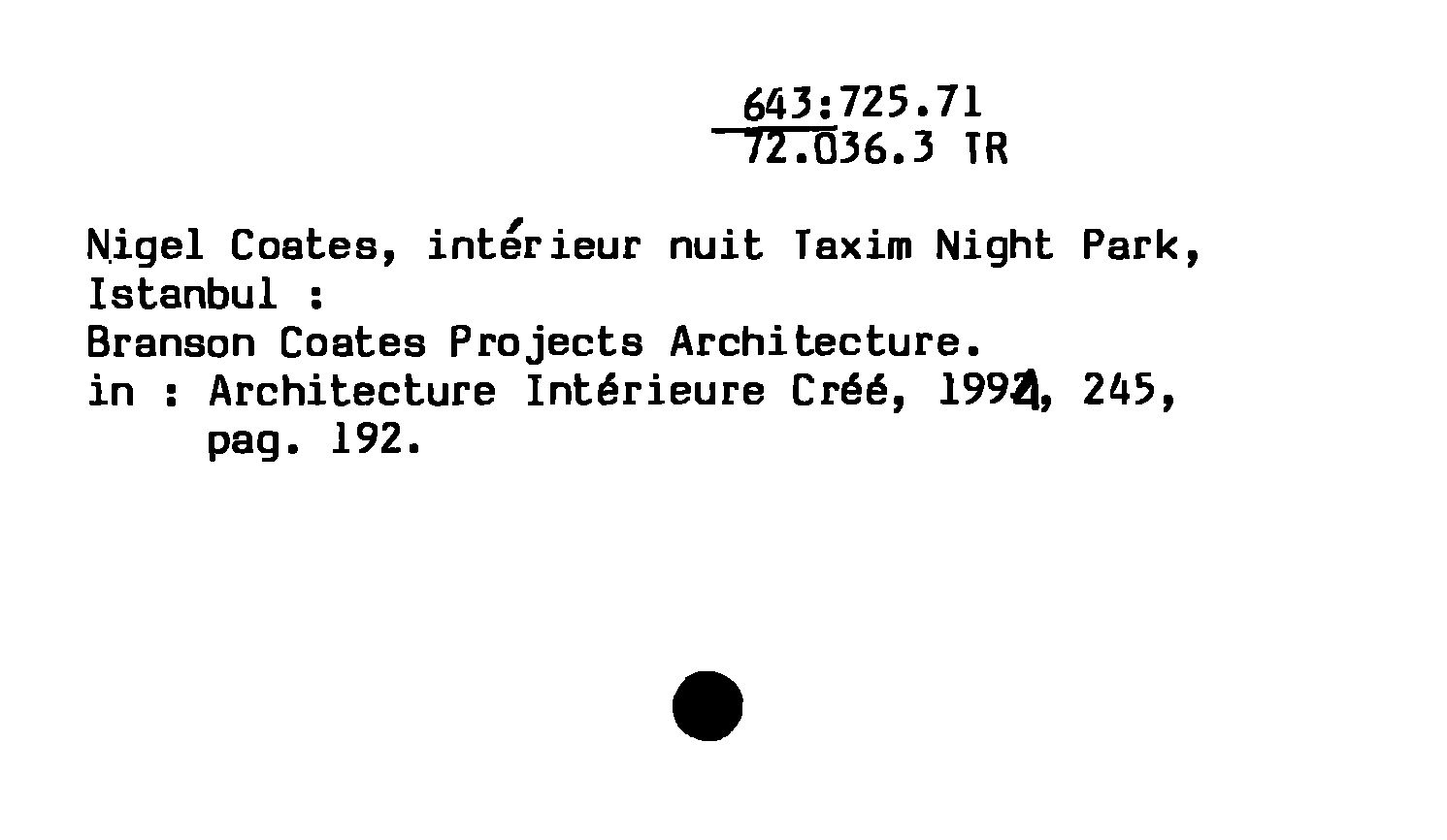 - Nigel Coates, intérieur nuit Taxim Night Park, Istanbui : Branson Coates Projects Architecture