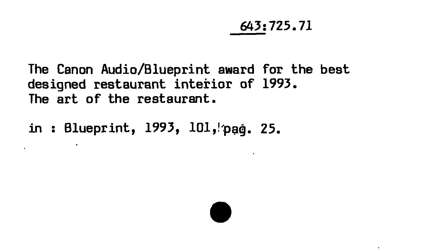 The Canon Audio/Blueprint award for the best designes restaurant interior of 1993 ; The art of the restaurant