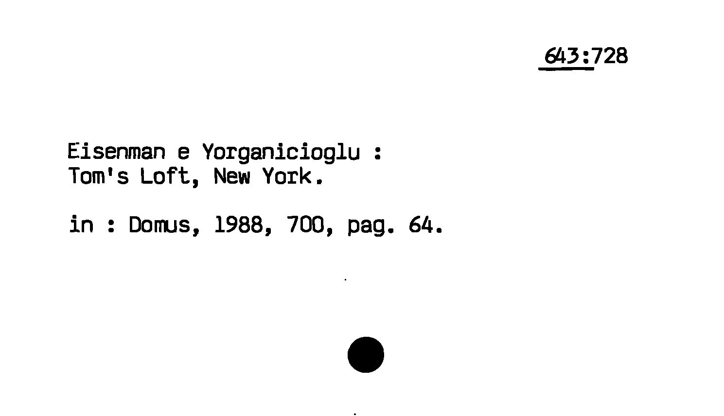 - Eisenman e Yorganicioglu : Tom's Loft, New York