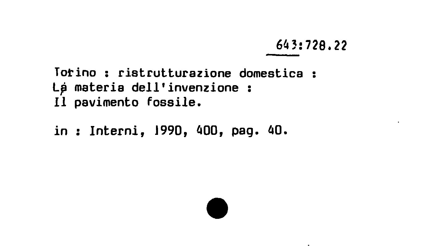 - Torino : ristrutturazione domestica ; La materia dell'invenzione