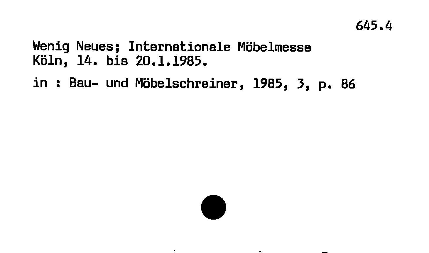 - Wenig Neues : Internationale Möbelmesse Köln, 14. bis 20.1.1985