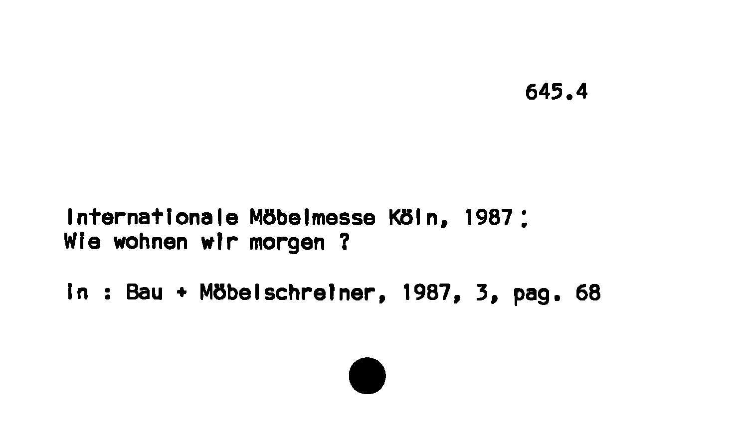 - Internationale Möbelmesse Köln, 1987 : Wie wohnen wir morgen ?