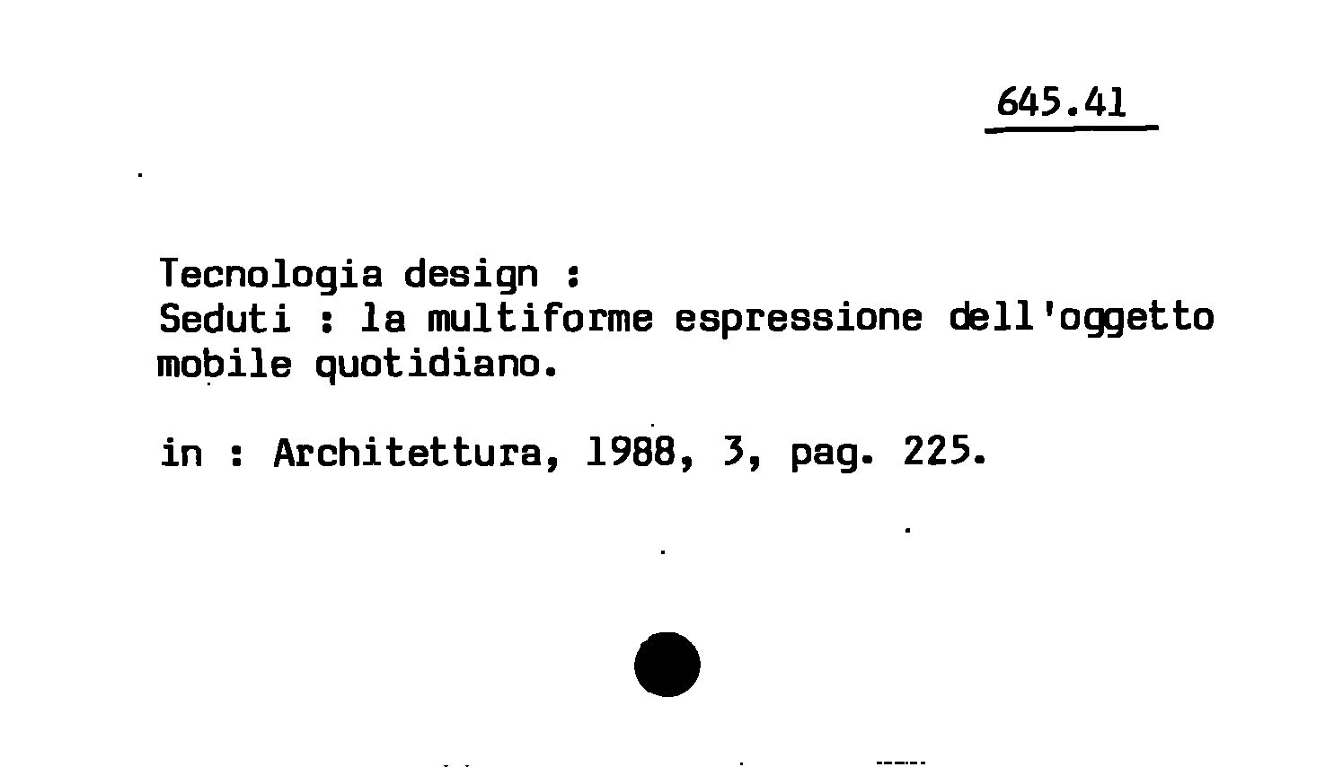 - Tecnologia design : Seduti ; la multiforme espressione dell'oggetto mobile quotidiano