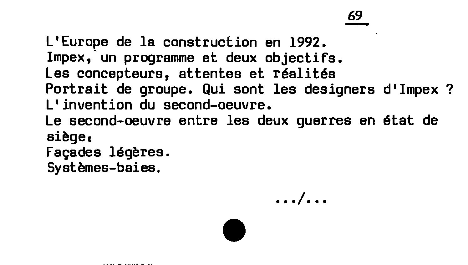 - L'Europe de la construction en 1992 : Impex,un programme et deux objectifs ; Les concepteurs, attentes et réalités. Portrait de groupe. Qui sont les designers d'Impex ? L'invention du second-oeuvre. Le second-oeuvre entre les deux guerres en état de siège. Facades légères. Systèmes-baies