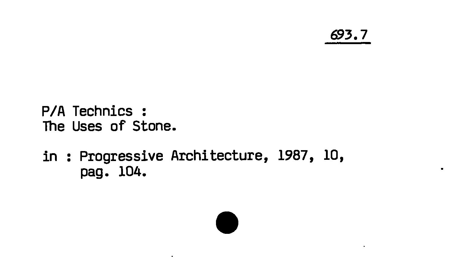 - P/A Technics : The Uses of Stone