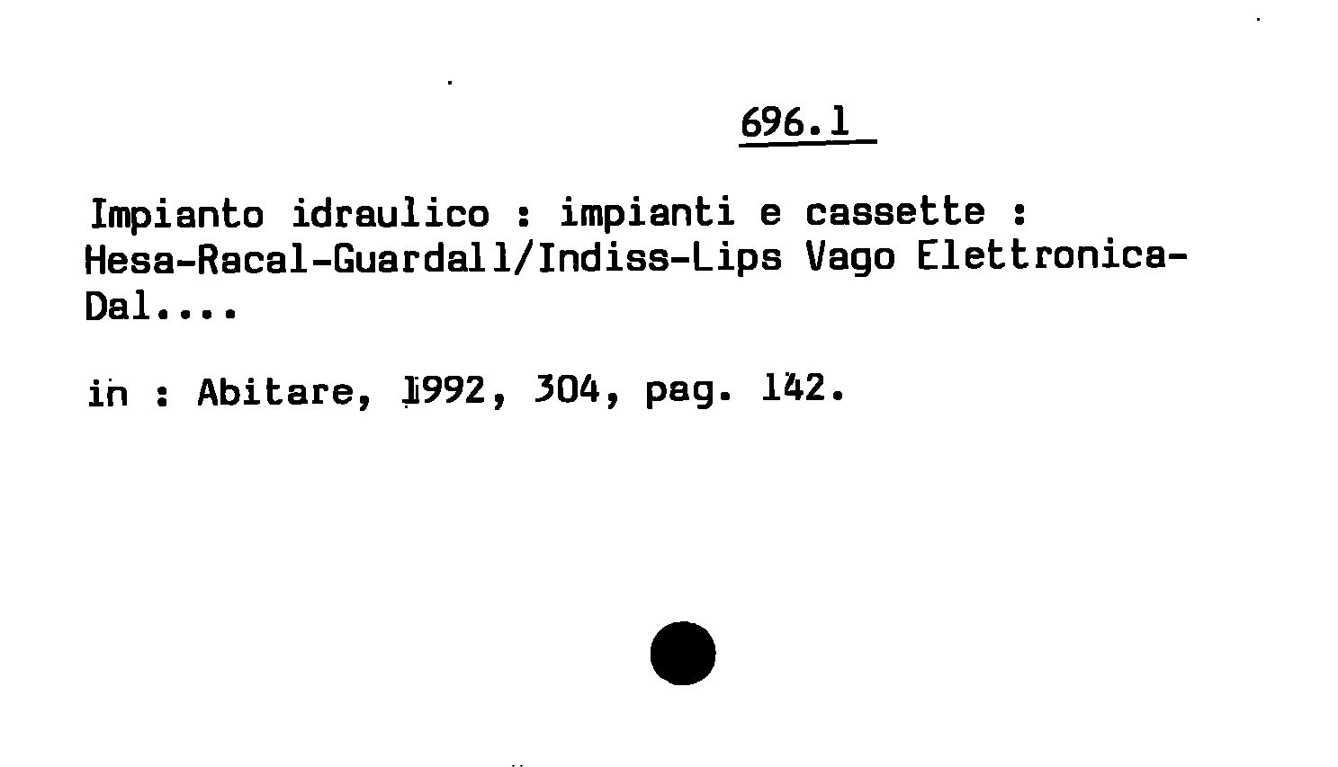 Impianto idraulico : impianti e cassette ; Hesa-Racal-Guardall/Indiss-Lips Vago Elettronica-Dal...