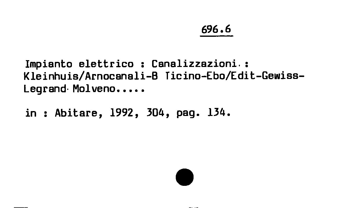 Impianto elettrico : Canalizzazioni ; Kleinhuis/Arnocanali-B Ticino-Ebo/Edit-Gewiss-Legrand Molveno....