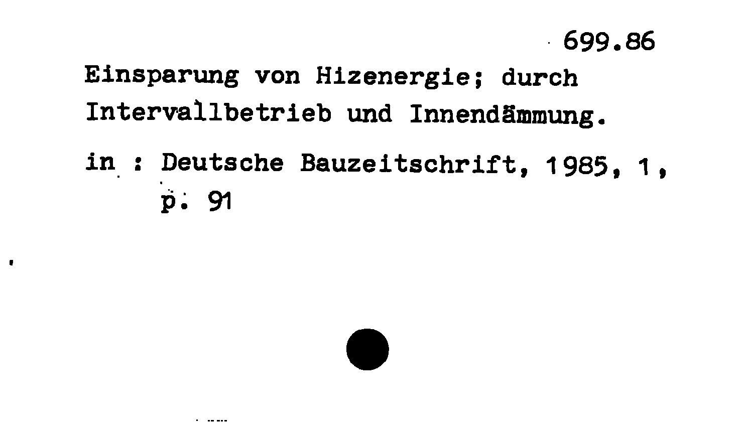 Einsparung von Hizenergie : dürch Intervallbetrieb und Innendämmung