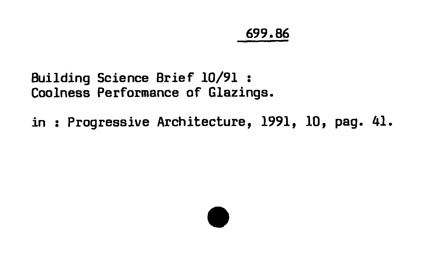 - Building Science Brief 10/91 : Coolness Performance of Glazings