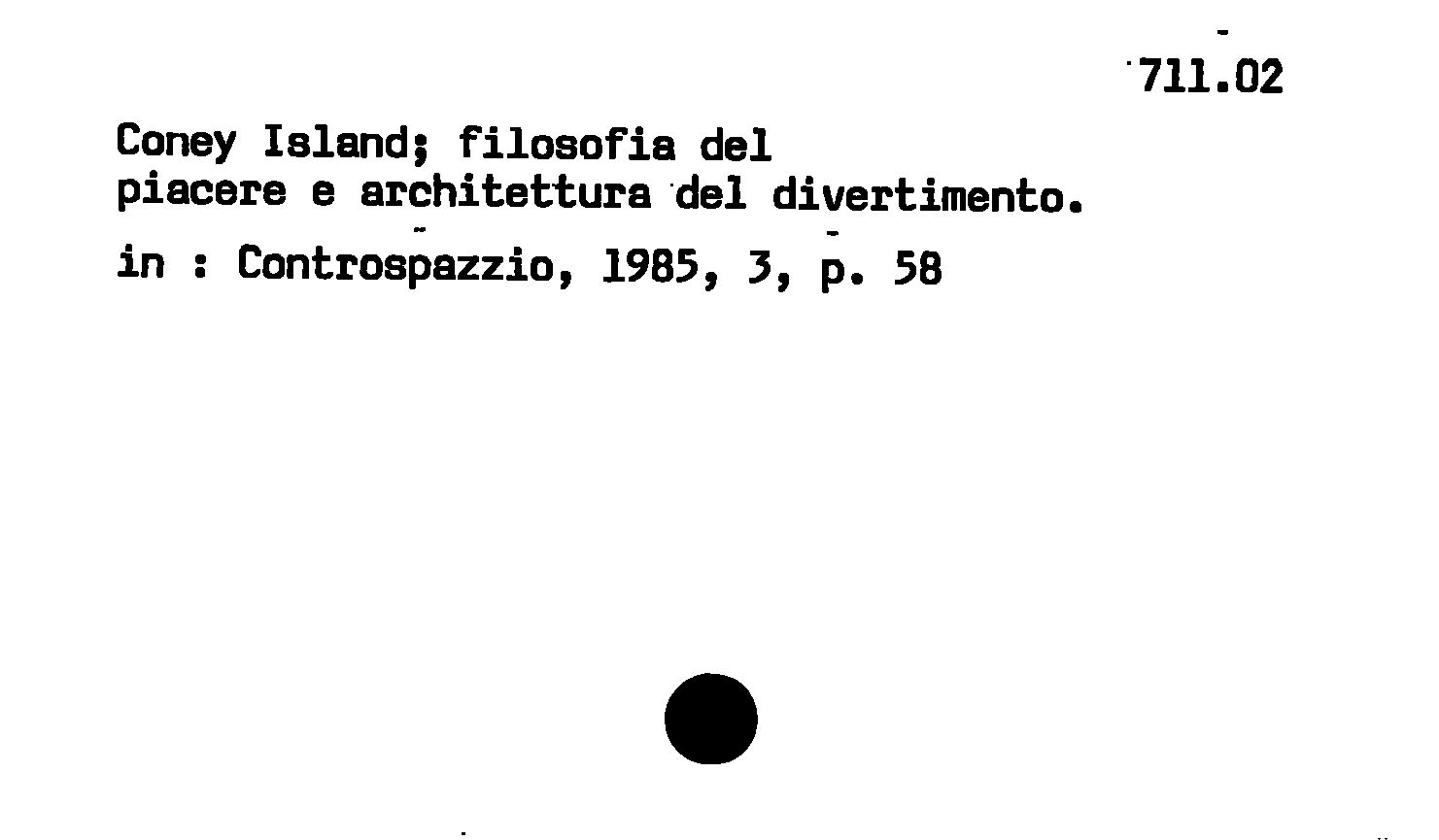 - Coney Island : filosofia del piacere e architettura del divertimento
