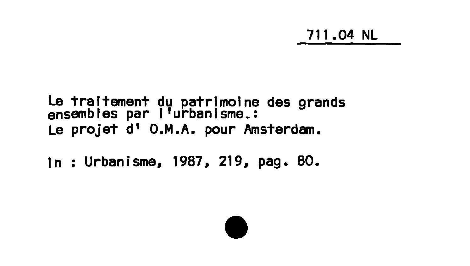 - Le traitement du patrimoine des grands ensembles par l'urbanisme : Le projet d' O.M.A. pour Amsterdam