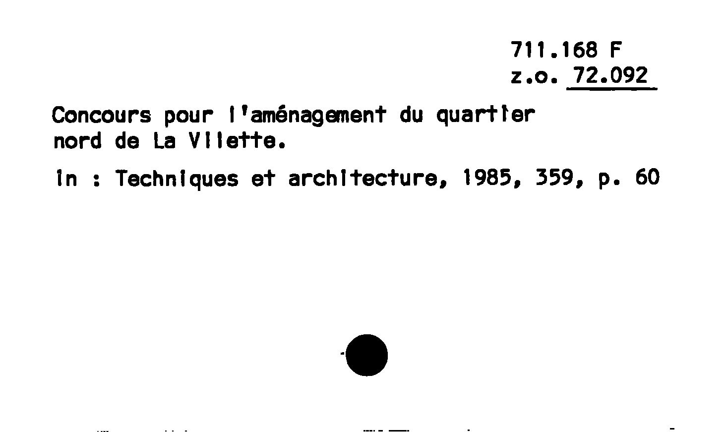 - Concours pour l'aménagement du quartier nord de la Vilette