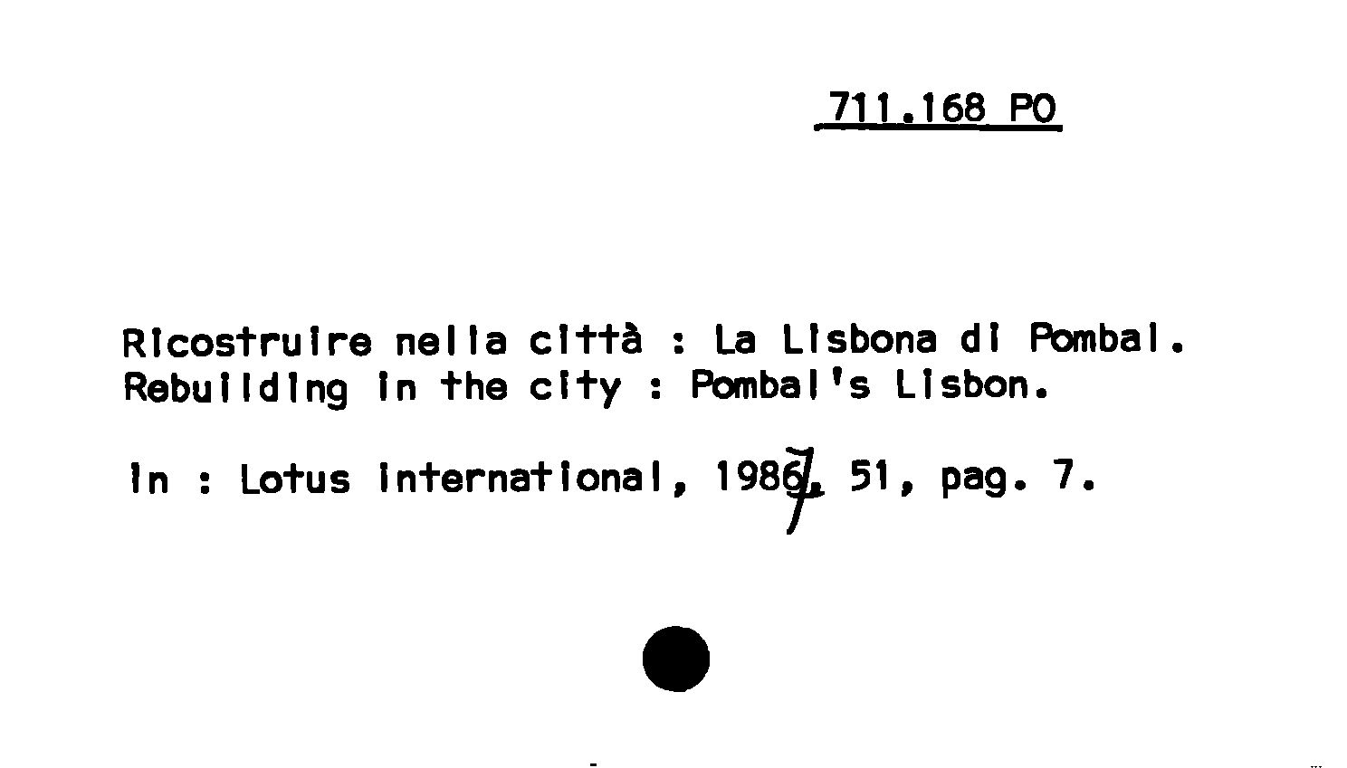- Ricostruire nella città : La Lisbona di Pombal ; Rebuilding In the city : Pombal's Lisbon