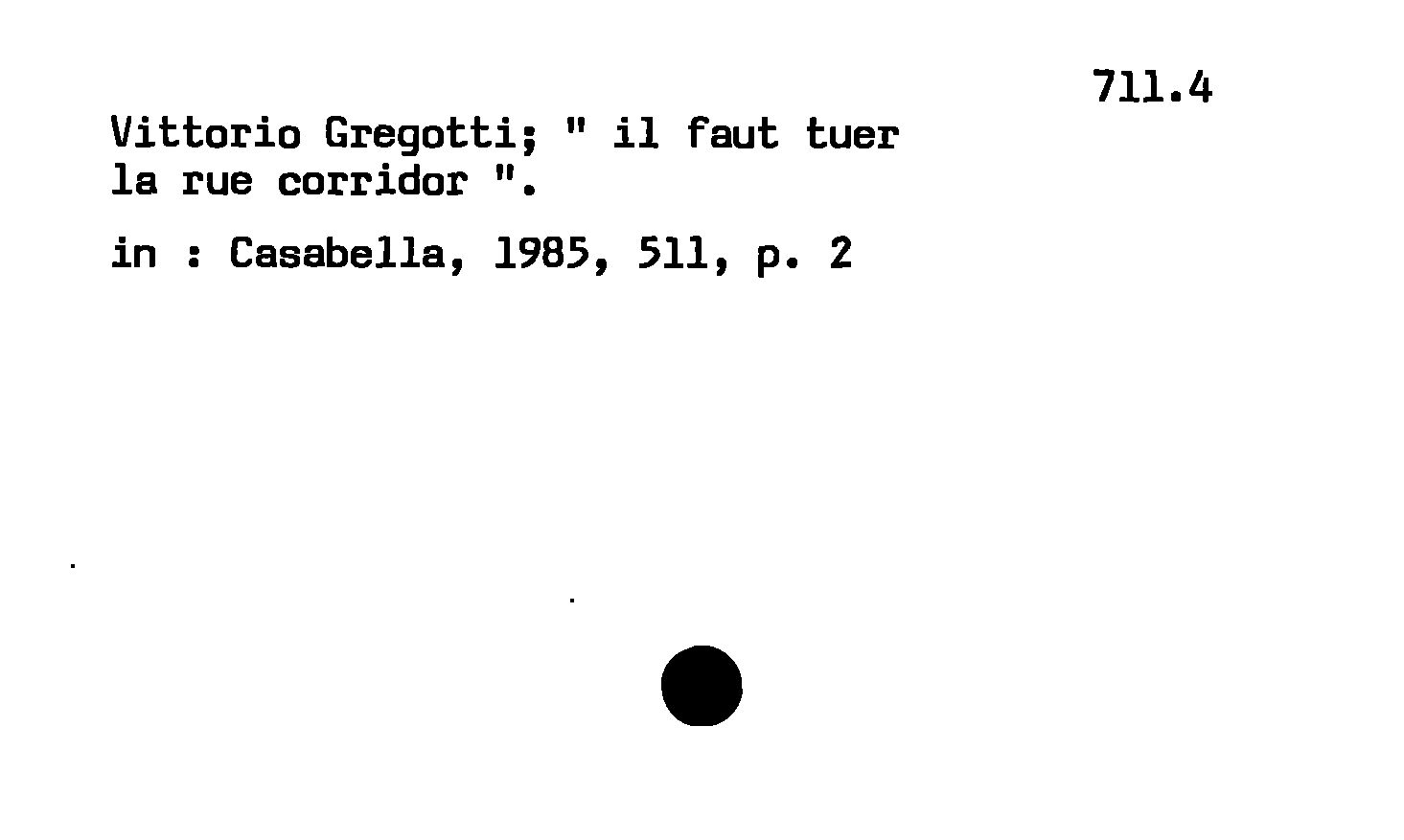 - Vittorio Gregotti : "il faut tuer la rue corridor "