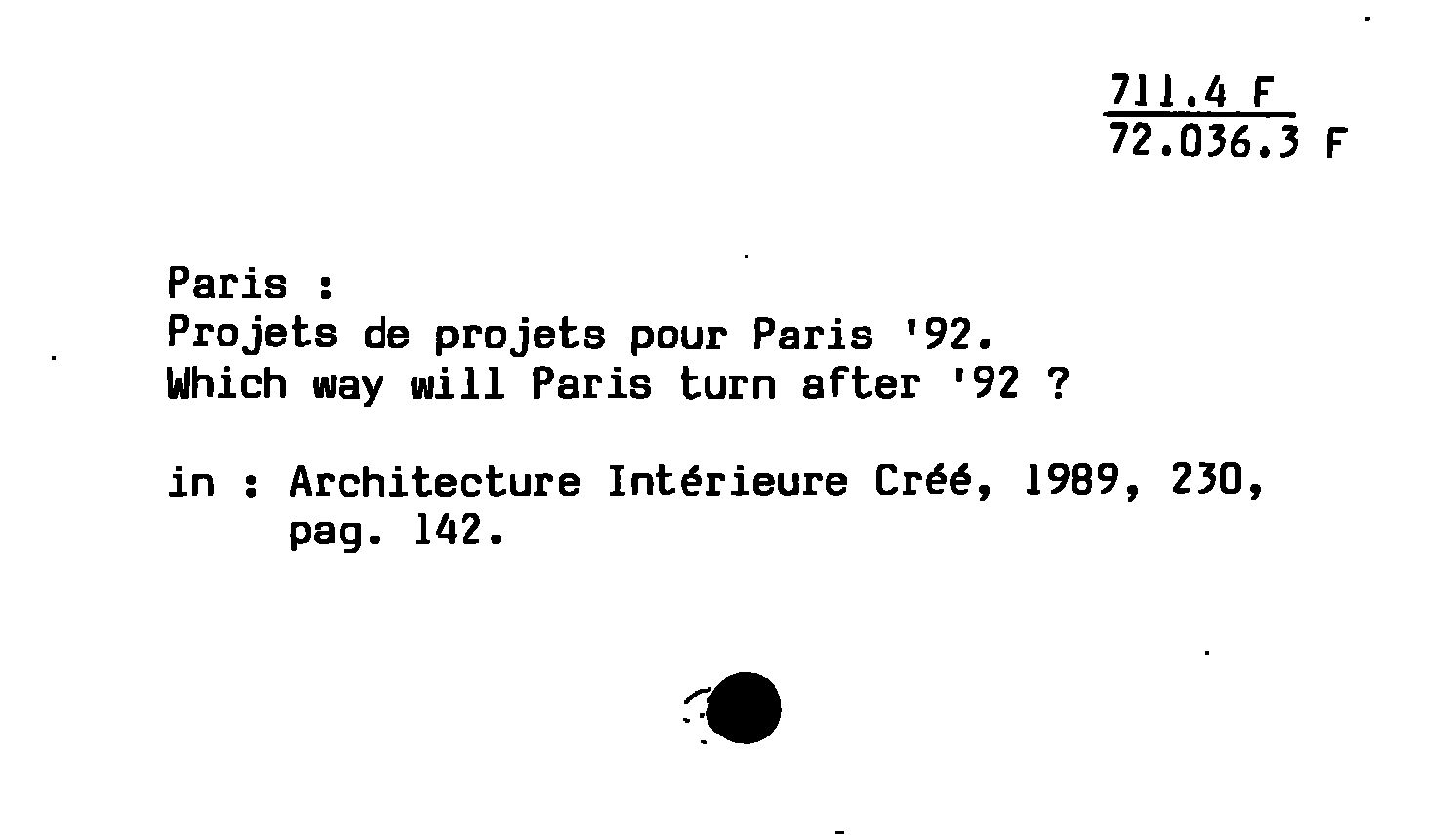 Paris : Projets de projets pour Paris '92 ; Which way will Paris turn after '92 ?
