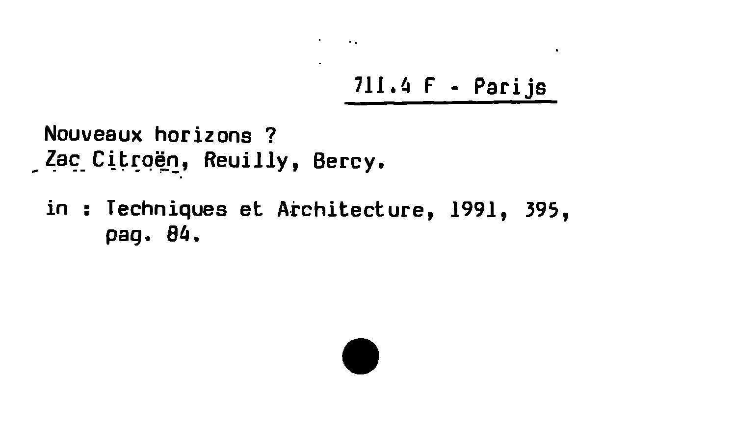 - Nouveaux horizons? : Zac Citroën, Reuilly, Bercy