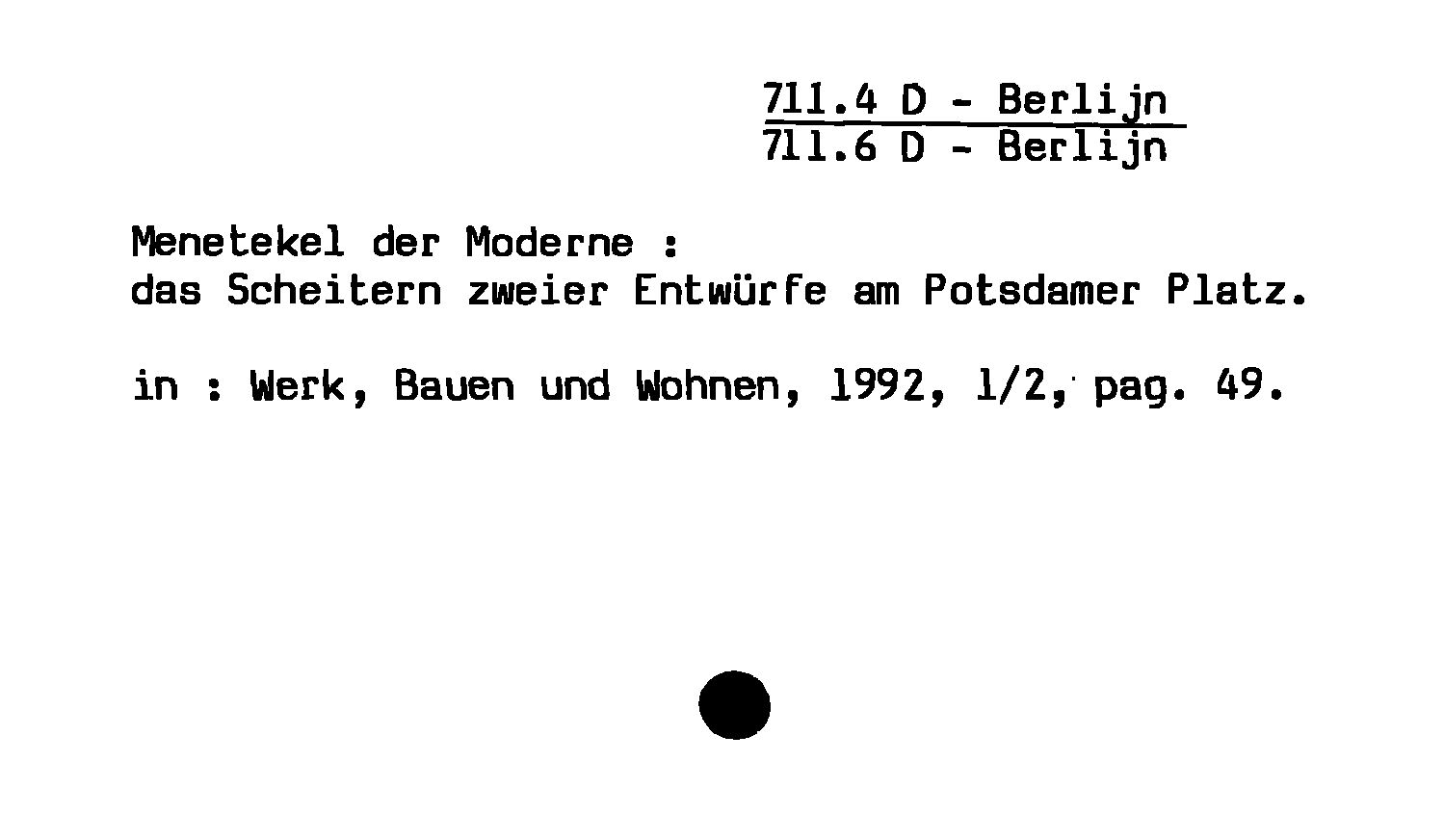 - Menetekel der Moderne : das Scheitern zweier Entwürfe am Potsdamer Platz