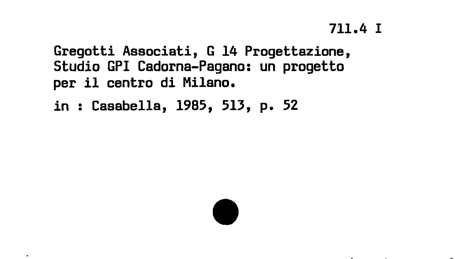 Gregotti Associati, G 14 Progettazione, Studio GPI Cadorna- ano : un progetto per il centro di Milano