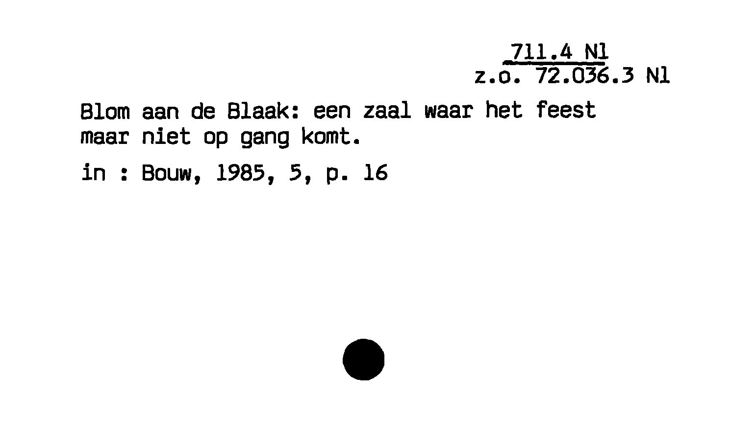 Blom aan de Blaak : een zaal waar het feest maar niet ogang komt