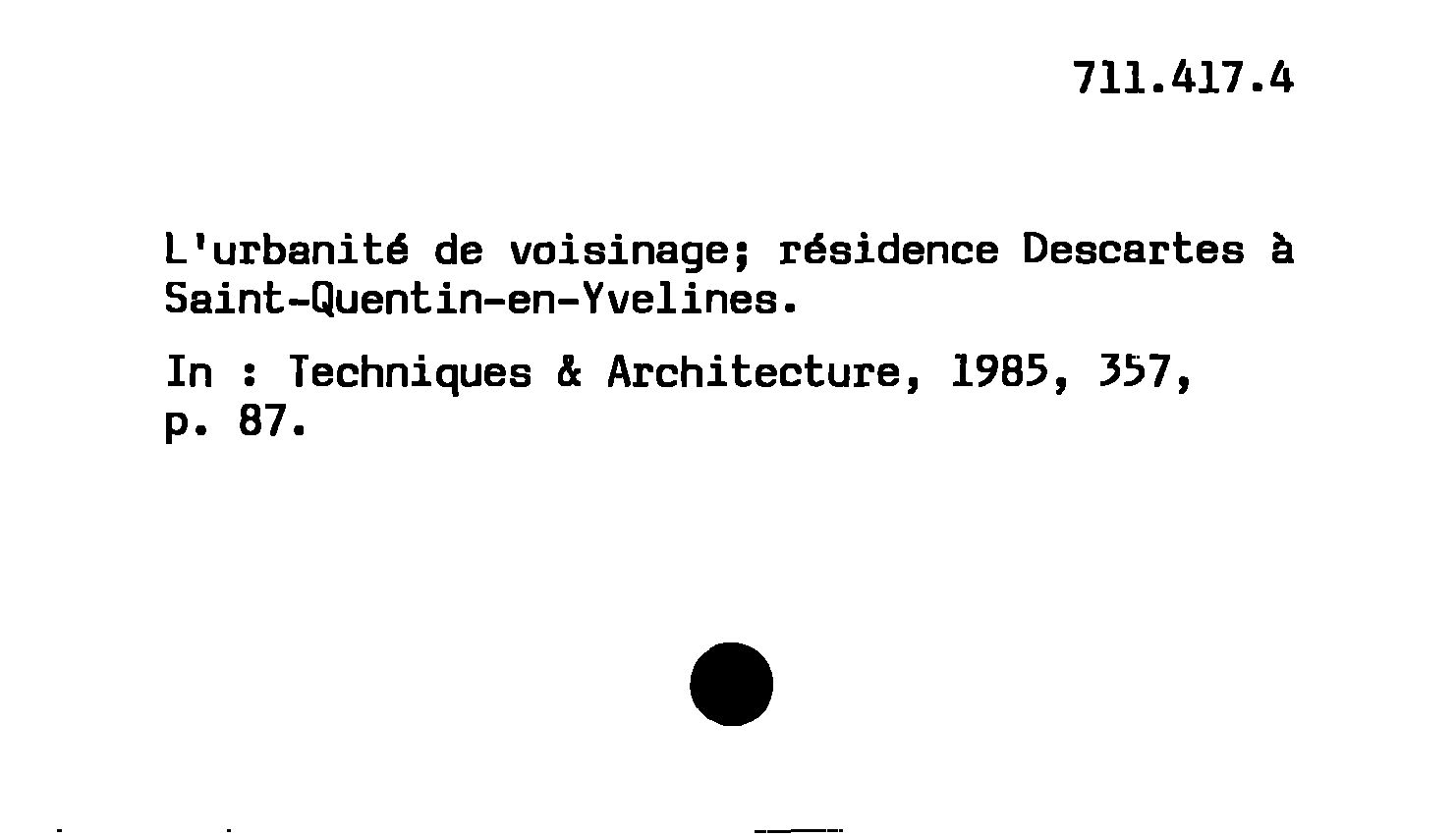 - L'urbanité de voisinage : résidence Descartes à Saint-Quentin-en-Yvelines