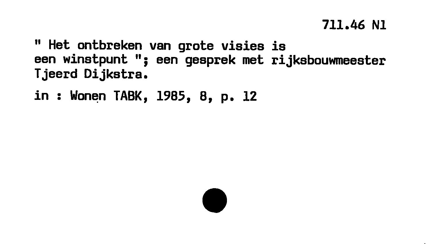 - "Het ontbreken van grote visies is een winstpunt" : een gesprek met rijksbouwmeester Tjeerd Dijkstra