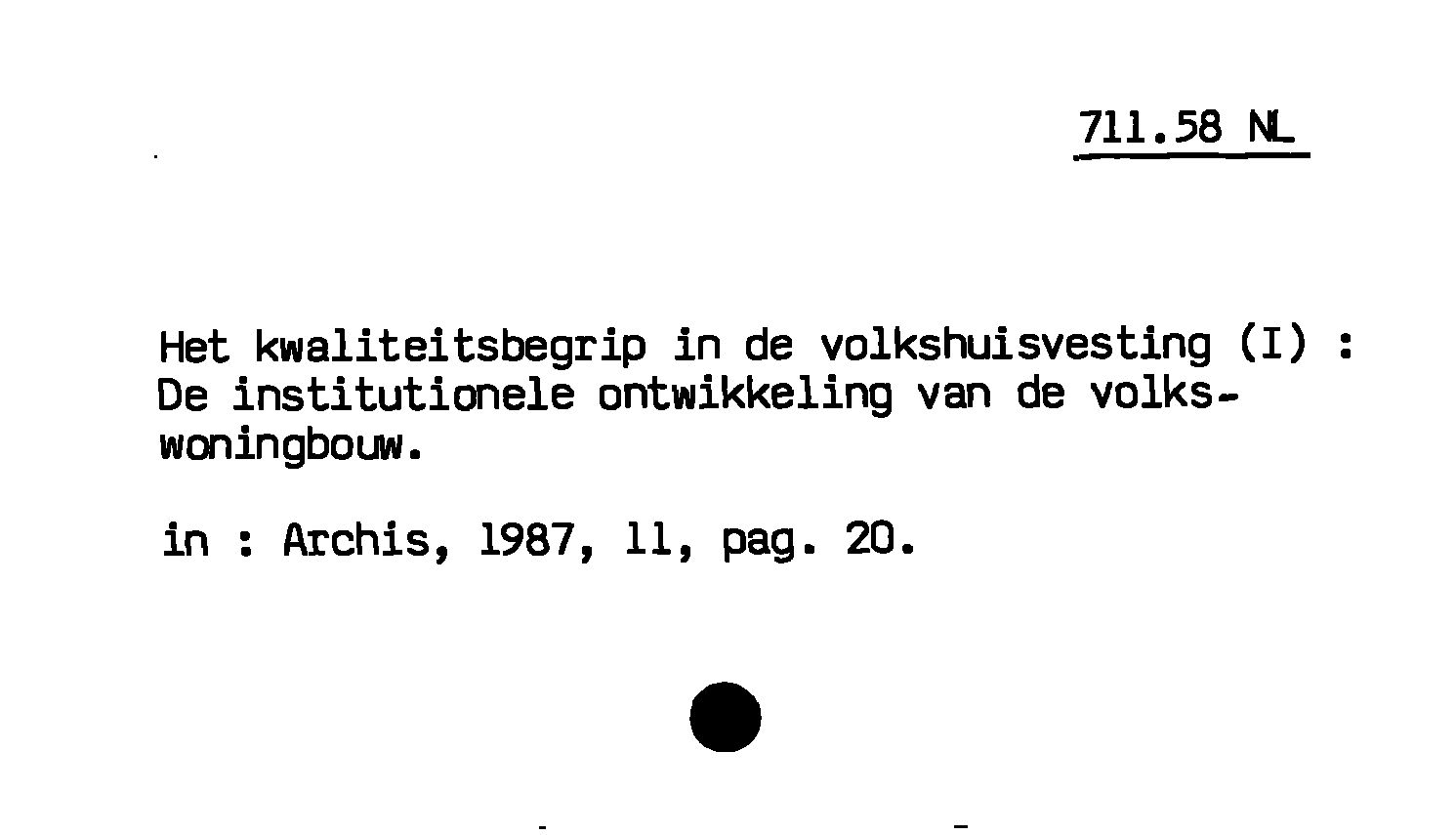 - Het kwaliteltsbegriin de volkshuisvesting (I) : De institutionele ontwikkeling van de volkswoningbouw