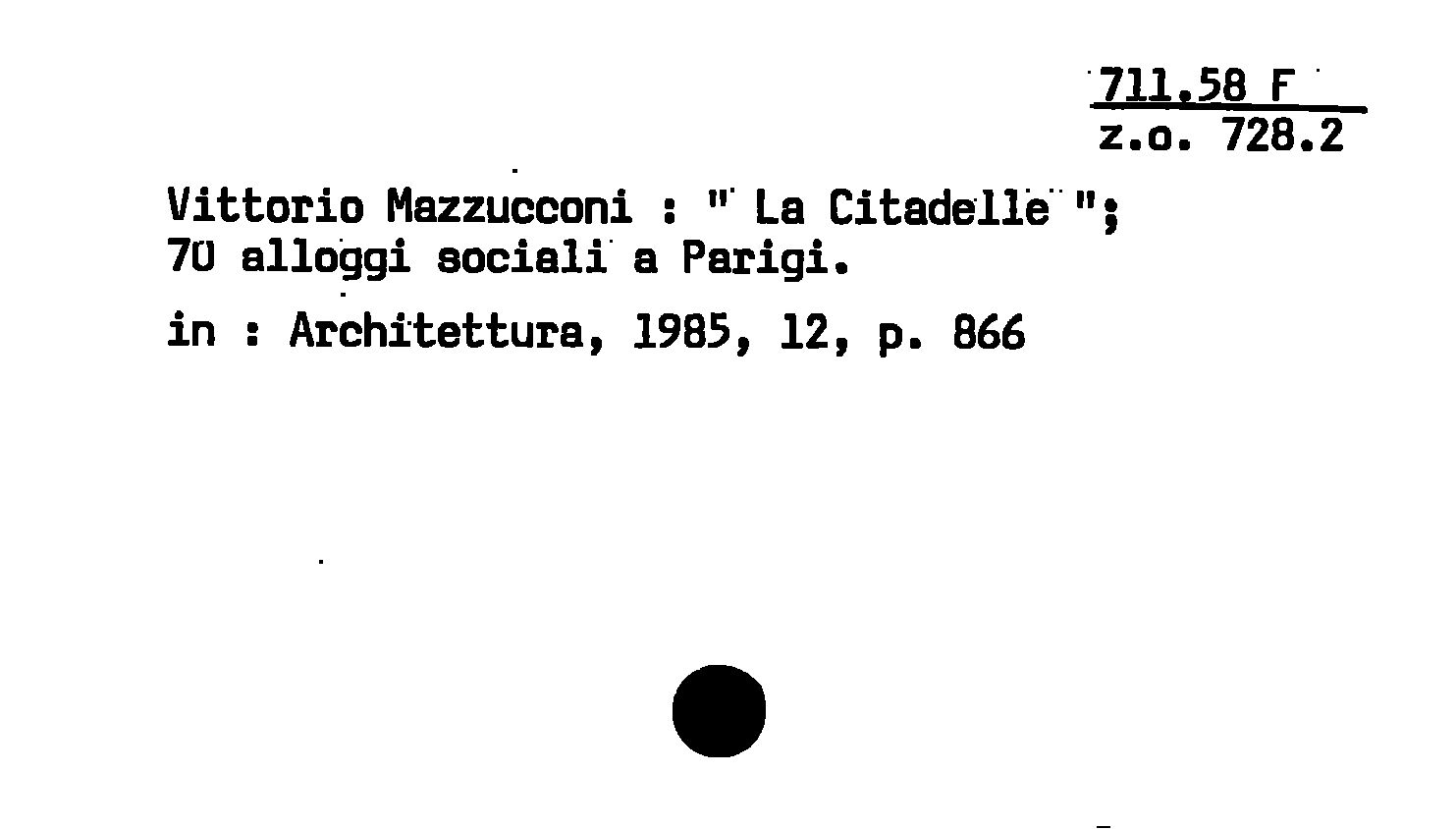 - Vittorio Mazzucconi : "La Citadelle" ; 70 alloggi sociali a Parigi