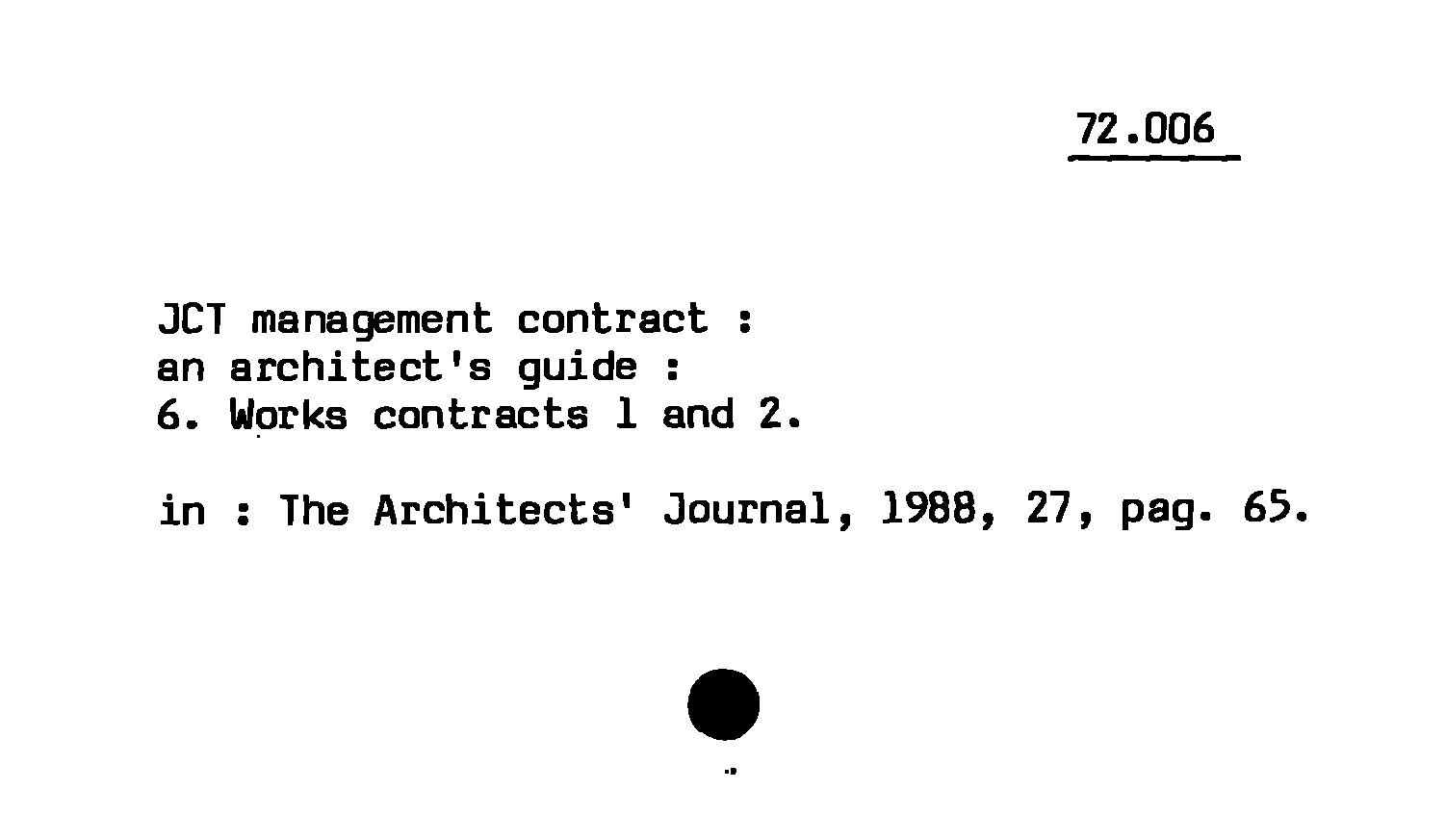 - JCT management contract : an architect's guide ; 6. Works contracts 1 and 2