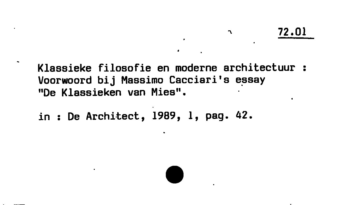 - Klassieke filosofie en moderne architectuur : Voorwoord bij Massimo Cacciari's essay "De Klassieken van Mies"