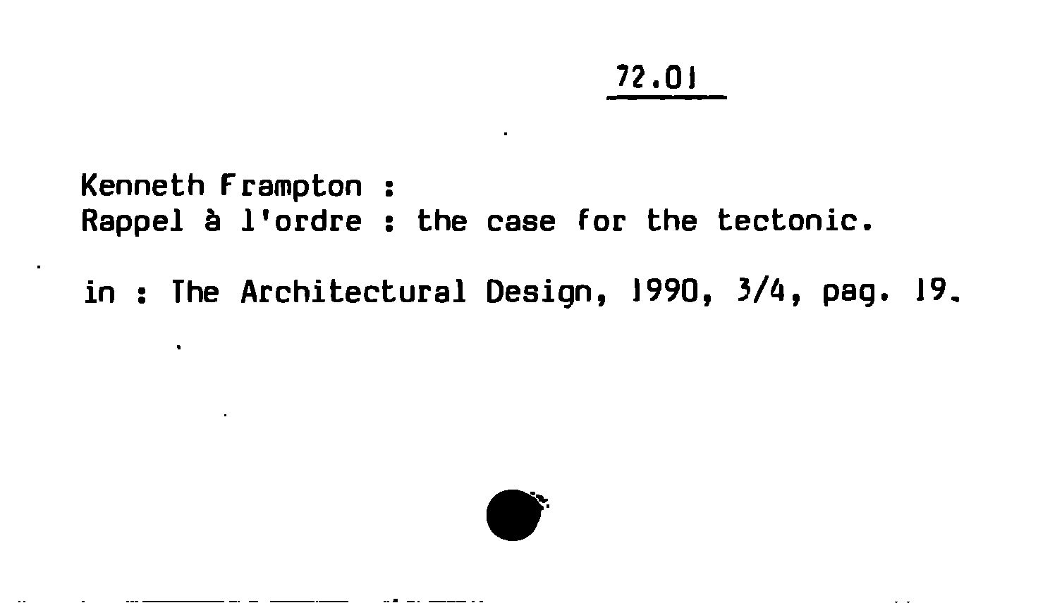 - Kenneth Frampton : Rappel à l'ordre ; the case for the tectonic