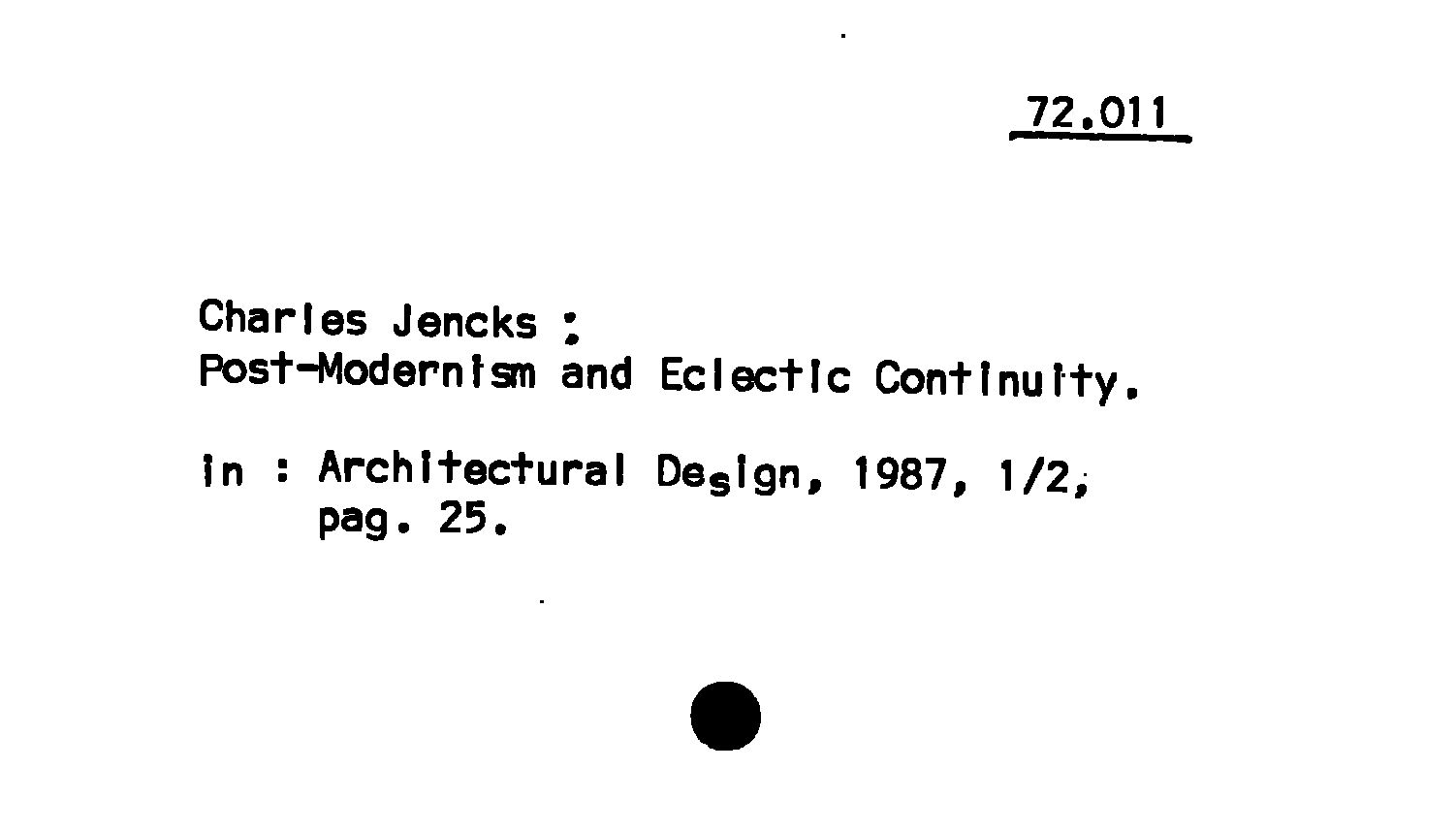 - Charles Jencks : Post-Modernism and Eclectic Continuity