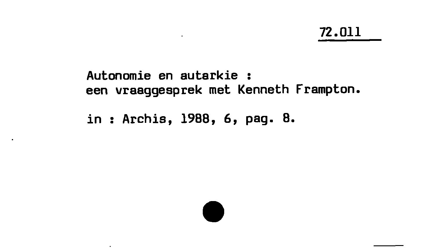 - Autonomie en autarkie : een vraaggesprek met Kenneth Frampton