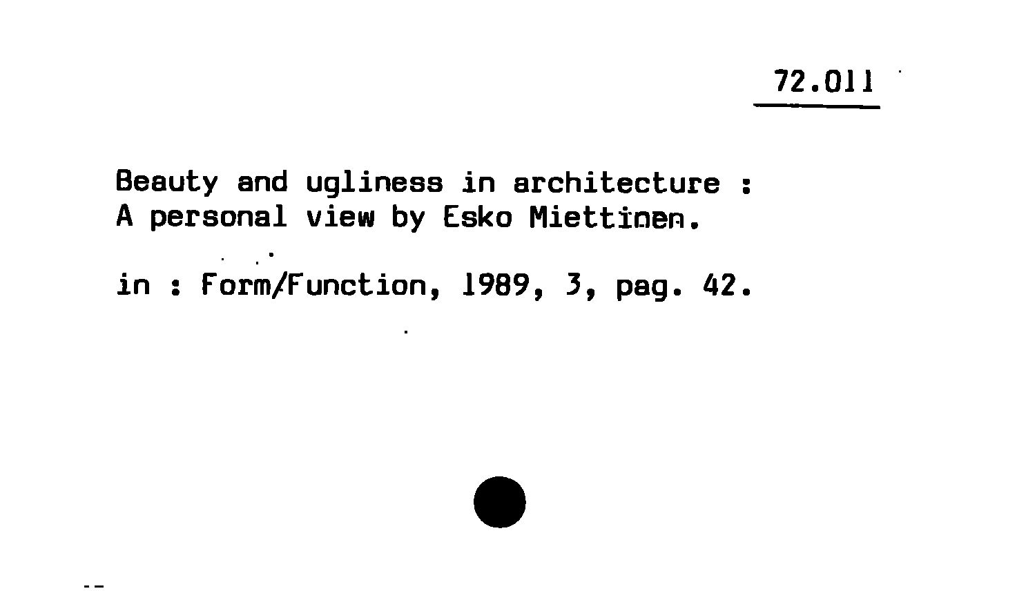 Beauty and ugliness in architecture : A personal view by Esko Miettinen