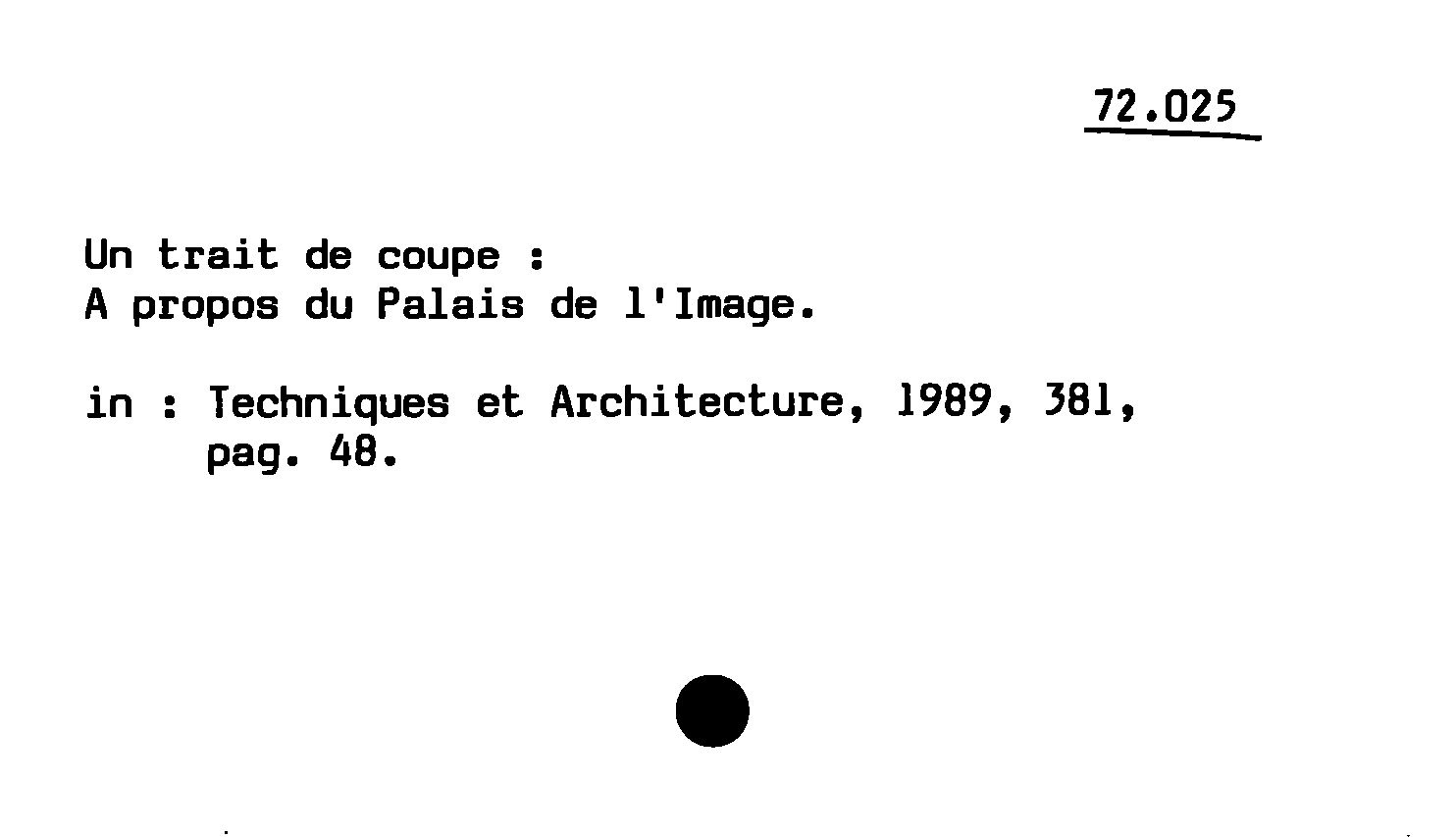 - Un trait de coupe : A propos du Palais de l'Image