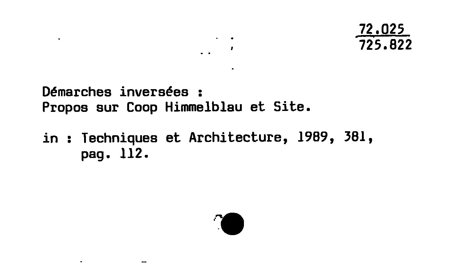 - Démarches inversées : Propos sur Coop Himmelblau et Site