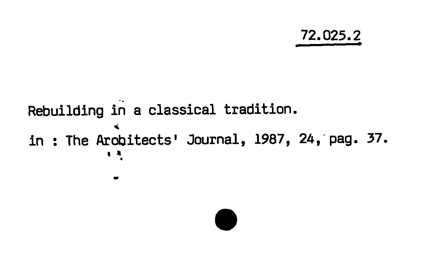 - Rebuilding in a classical tradition
