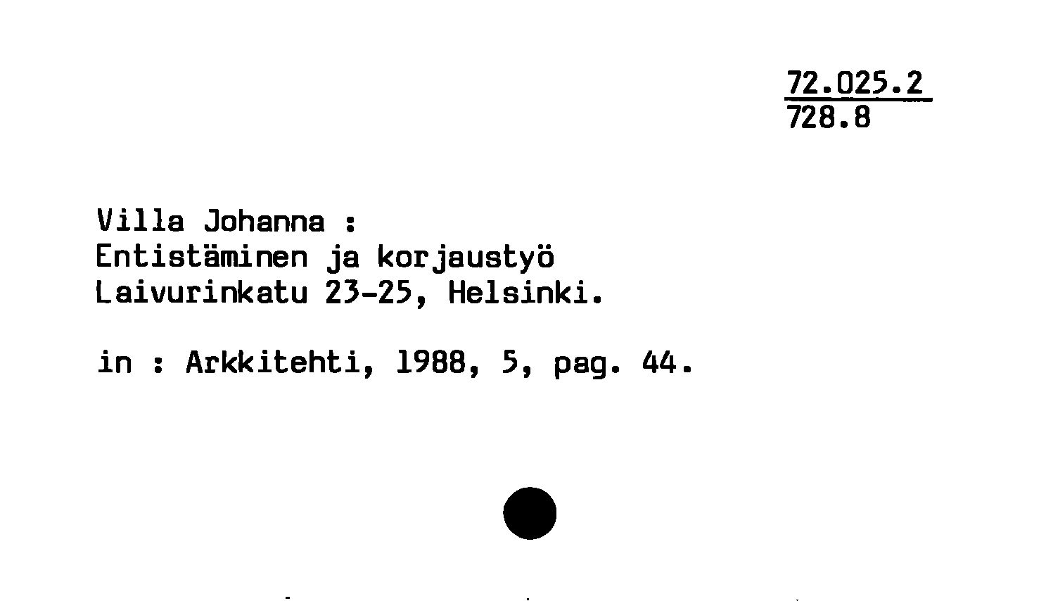 - Villa Johanna : Entistäminen ja korjaustyö ; Laivurinkatu 23-25, Helsinki